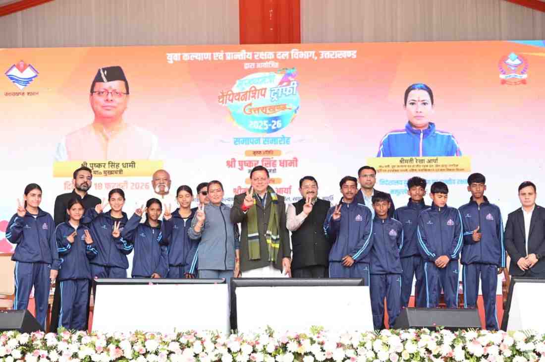 देहरादून। मुख्यमंत्री पुष्कर सिंह धामी ने बुधवार को ननूरखेड़ा में आयोजित मुख्यमंत्री चैम्पियनशिप ट्रॉफी 2025-26 के समापन समारोह में प्रतिभाग किया। इस अवसर पर उन्होंने